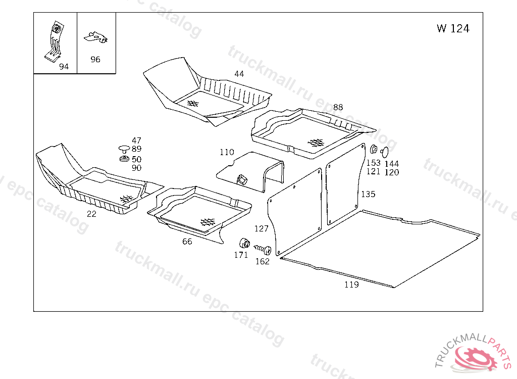 LINING FRONT FLOOR,LEFT, 201 A 450983 201 F 513803 124 A 777516 124 F 078642 UP TO CHASSIS NEW EQUIPMENT B 065821 F 122352