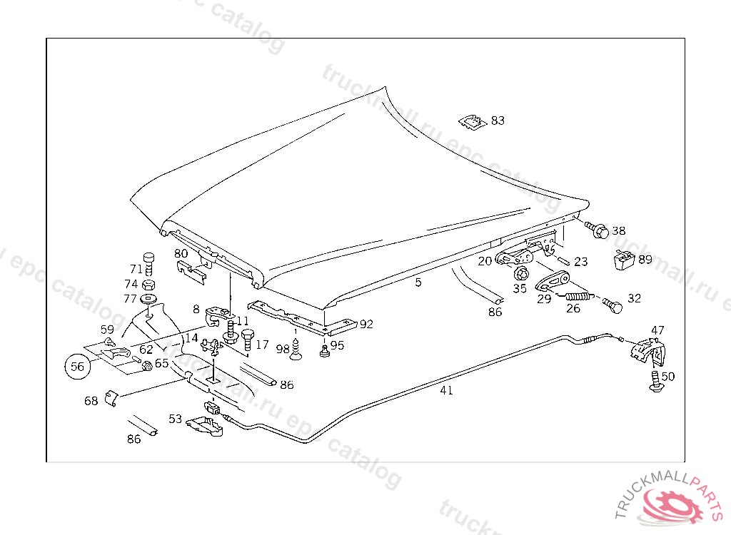 ENGINE HOOD , FIRST EXHAUST STOCK OF OLD PARTS UP TO IDENT NO. F 081205, Replaced By: A1248800357