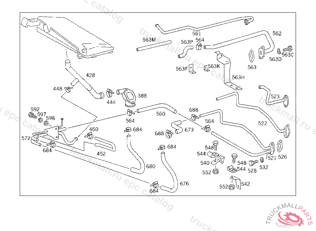 HOSE HEATER RETURN, FROM RADIATOR TO CAB HEATING PIPE