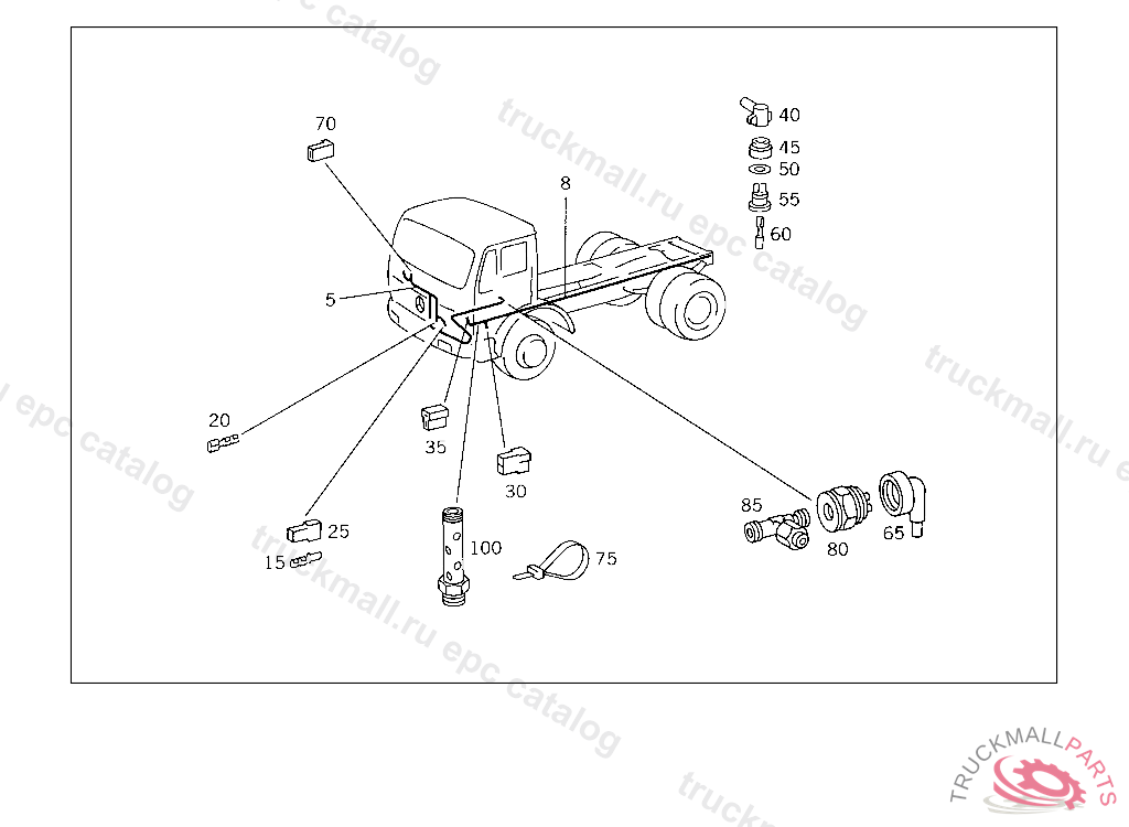 PIN BUSHING HOUSING. PLUG HOUSING FROM CHASSIS/CAB CONNECTION POINT TO TACHOGRAPH
