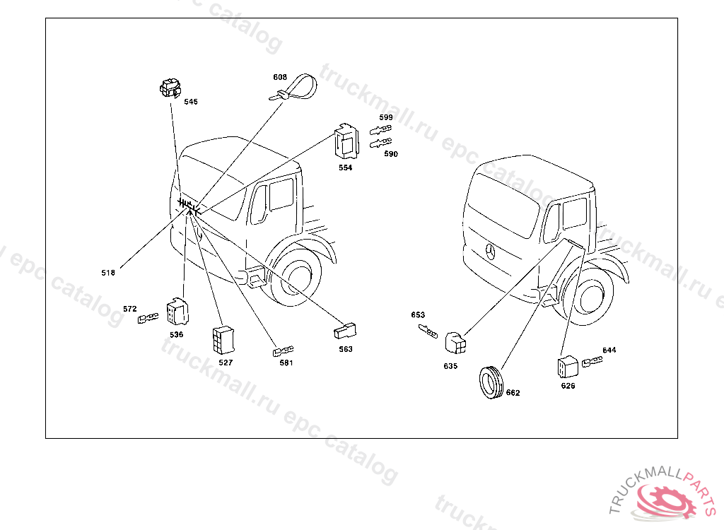 ELECTRIC CABLE CAB, BRANCH-OFFS TO FUSE BOXES,RELAYS NOS.1-5,DIODES NOS.1-5,TEST CONNECTION, EXHAUST STOCK OF OLD PARTS NUMBER FIRST UP TO CHASSIS 4 495598-5 003998 TO BE ADAPTED DURING ASSEMBLY