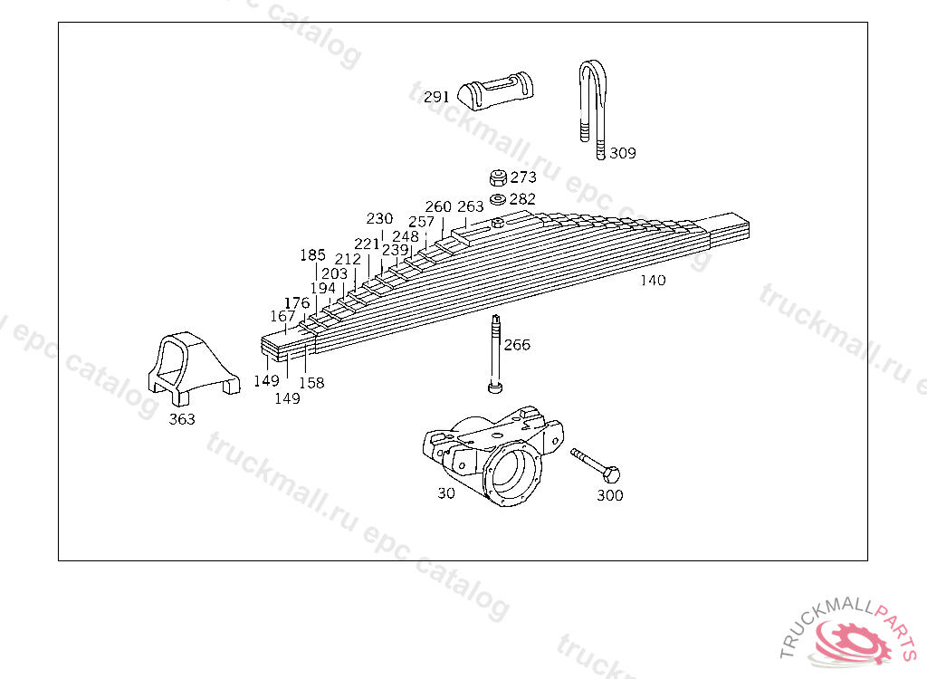 REAR SPRING (TRAPEZOIDAL SPRING),NUMBER OF LEAVES: "16", MUST NOT BE DISASSEMBLED