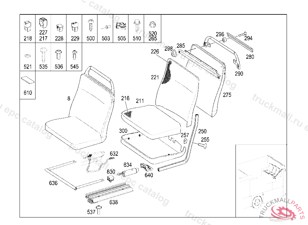 BACKREST PASSENGER SEAT, ONE-AND-A-HALF SEAT TO A6289400801, TO BE ORDERED ONLY ON COMMISSION AND INDICATING ALSO ALL THE VEHICLE DATA REQUIRED