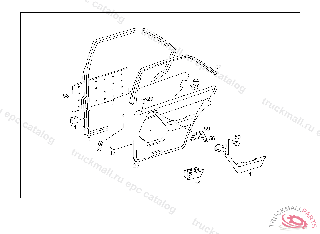PANELLING RIGHT REAR DOOR, USED WITH FABRIC TRIM