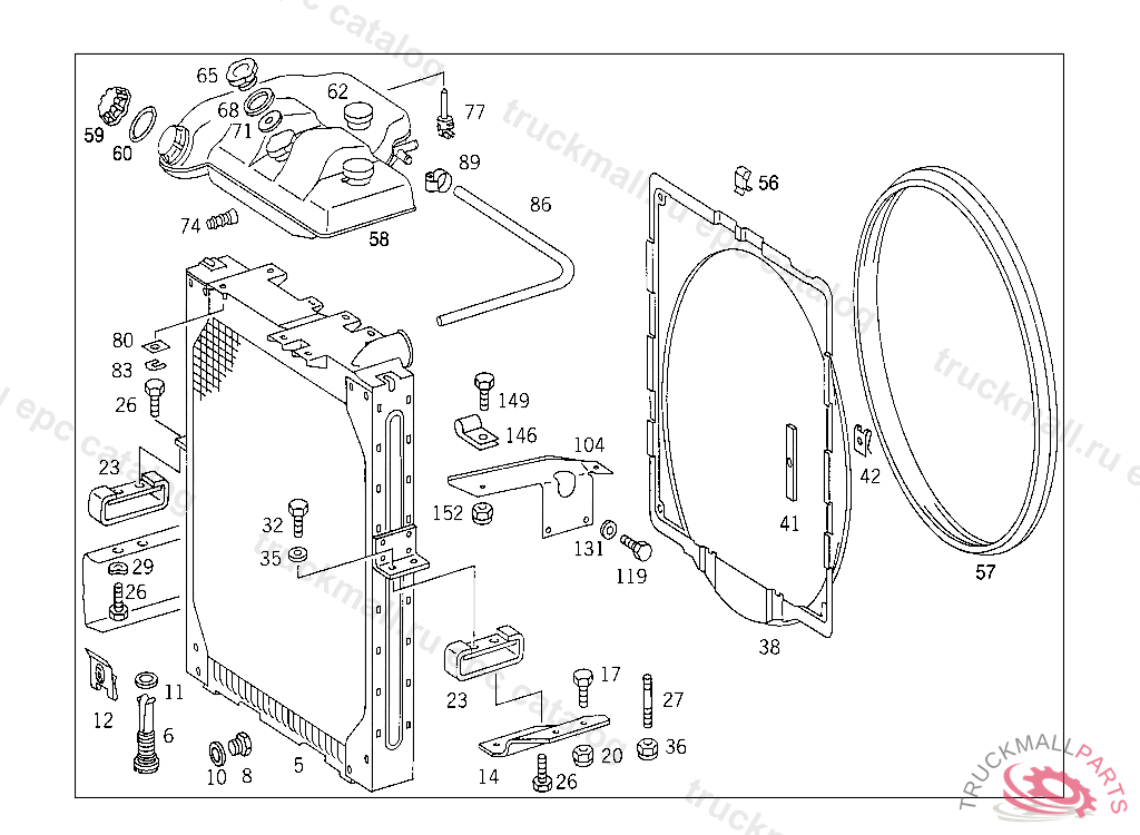 RADIATOR , FIRST EXHAUST STOCK OF OLD PARTS UP TO IDENT NO. 5 752618, Replaced By: A6525012501