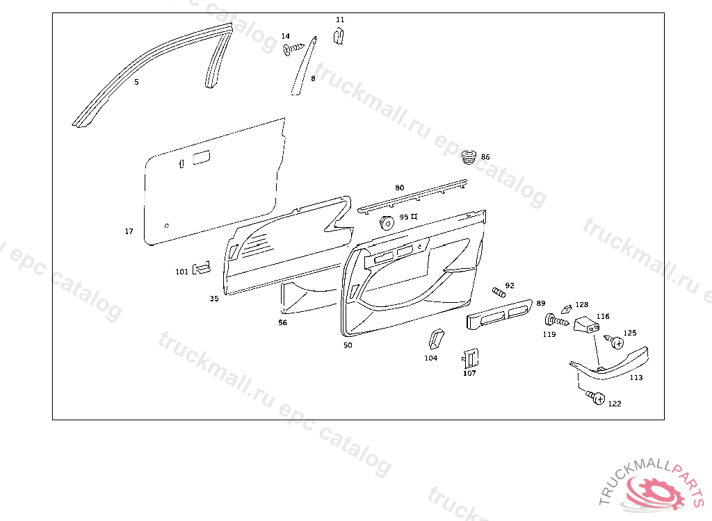 GARNISH MOULDING LEFT ZEBRANO, 126.021 006843 126.022,023 024442 126.032,033 009947 126.036,037 007709 FROM CHASSIS SEE SA 56 395