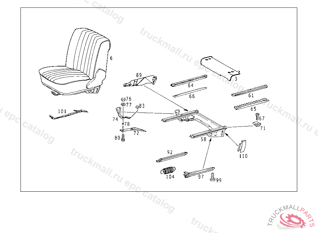 SEAT GUIDE LEFT, LEFT SIDE: 116.020 073266 116,024,025 069696 116.028,029 036279 116.032,033 056135 RIGHT SIDE: 116.020 073552 116.024,025 069781 116.028,029 036282 116.032,033 056228