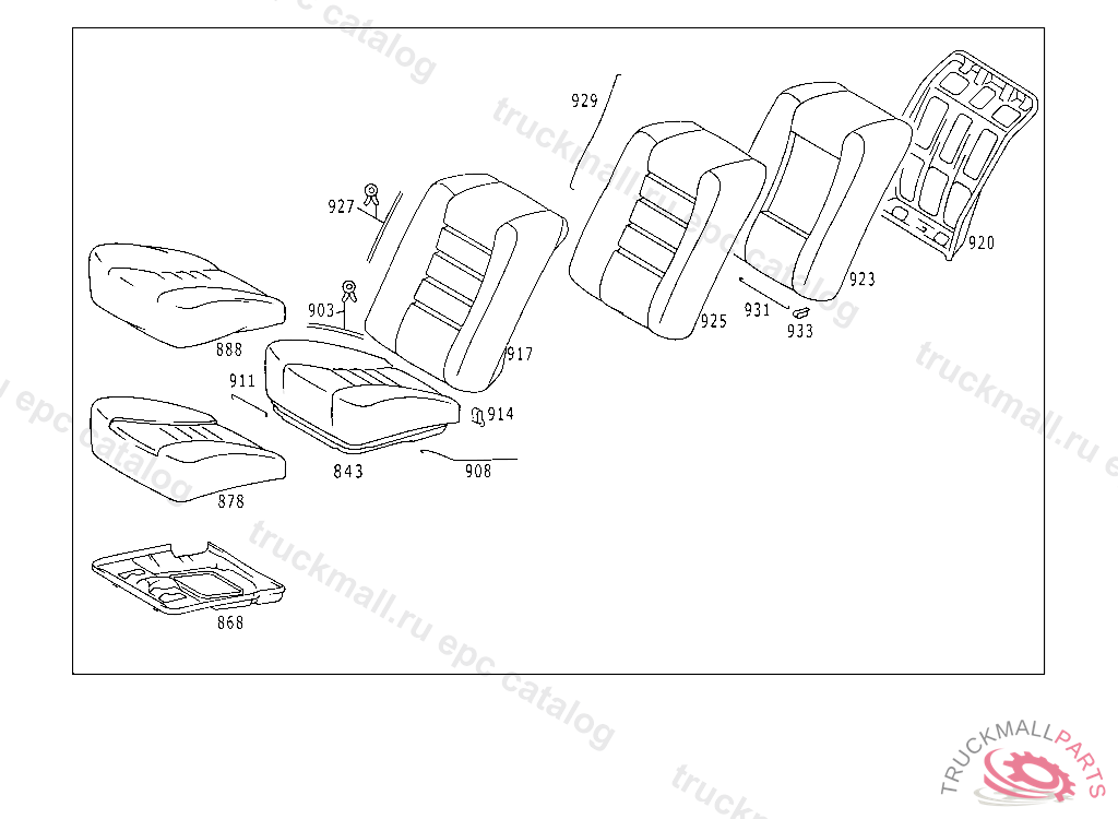 SEAT CUSHION REAR SEAT BENCH,RIGHT, NO.7156I NO.5089I NO.8434I NO.8432I NO.8433I NO.6119 AI NO.3120I NO.7155I I NO.6133 BI