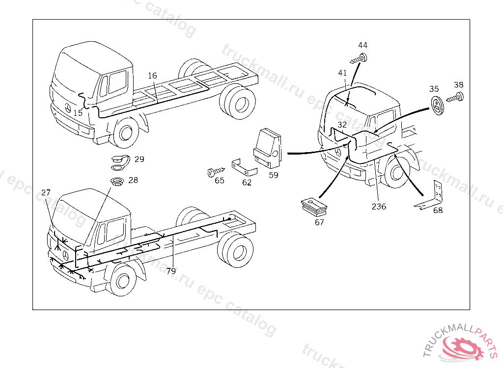 ELECTRIC CABLE FROM CAB PLUG-CONNECTION TO WASHER PUMP & TO CAB UNLOCKING MECHANISM