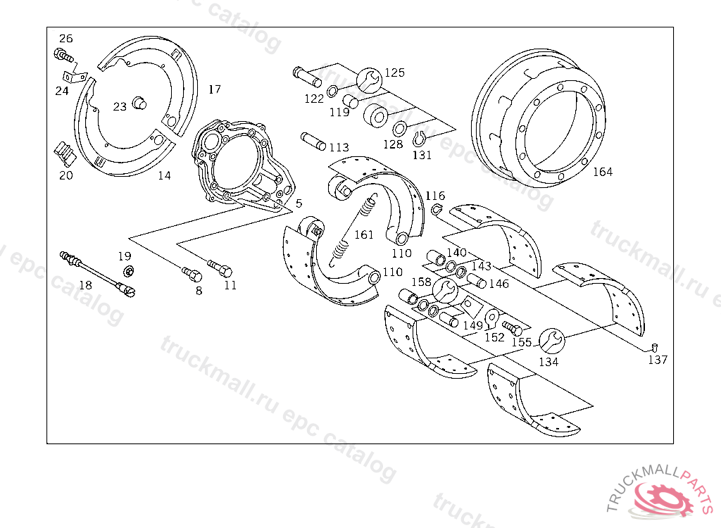 BRAKE SHOE , FIRST EXHAUST STOCK OF OLD PARTS UP TO FRONT AXLE E 128437, Replaced By: A3934202519