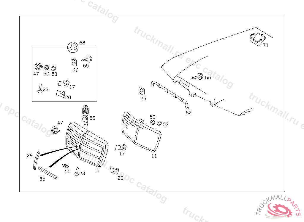 LOCK RADIATOR GRILLE SHELL TO ENGINE HOOD, 023 146000 033 029205 123 133752 130 152177