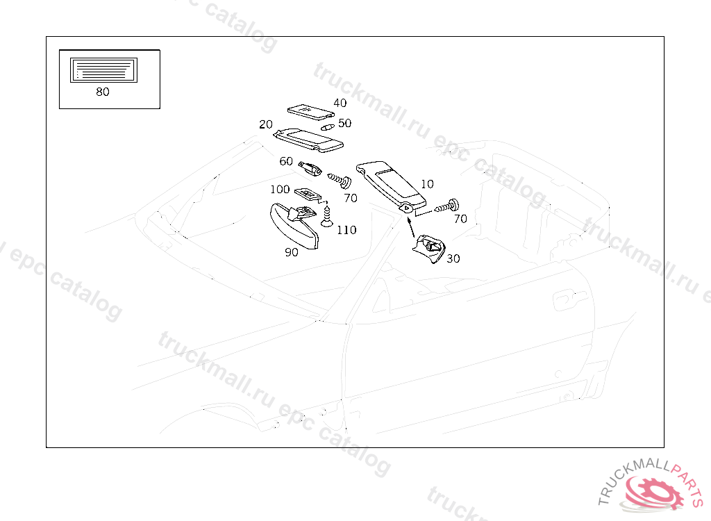 SUN VISOR WITH MIRROR ILLUMINATED,LEFT,C 188771NO.9045I NO.5070I NO.8310I .......I NO.8F33I .......I .......I NO.7095I IIIIIIII