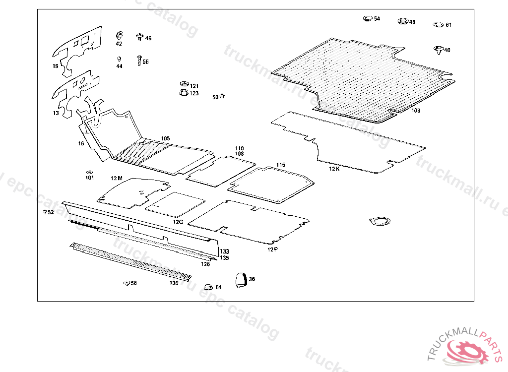 CARPET REAR FLOOR,RIGHT, STATE COLOR NUMBER WHEN ORDERING UP TO CHASSIS: 114.010 033394 114.015 036937 115.010 037134 115.015 035746 115.110 084833 115.115 038561