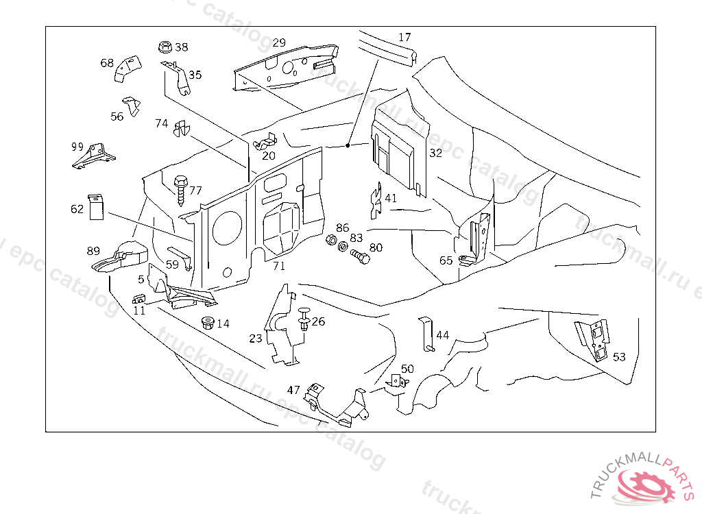 COVERING BETWEEN WHEELHOUSE AND RIGHT SIDE MEMBER