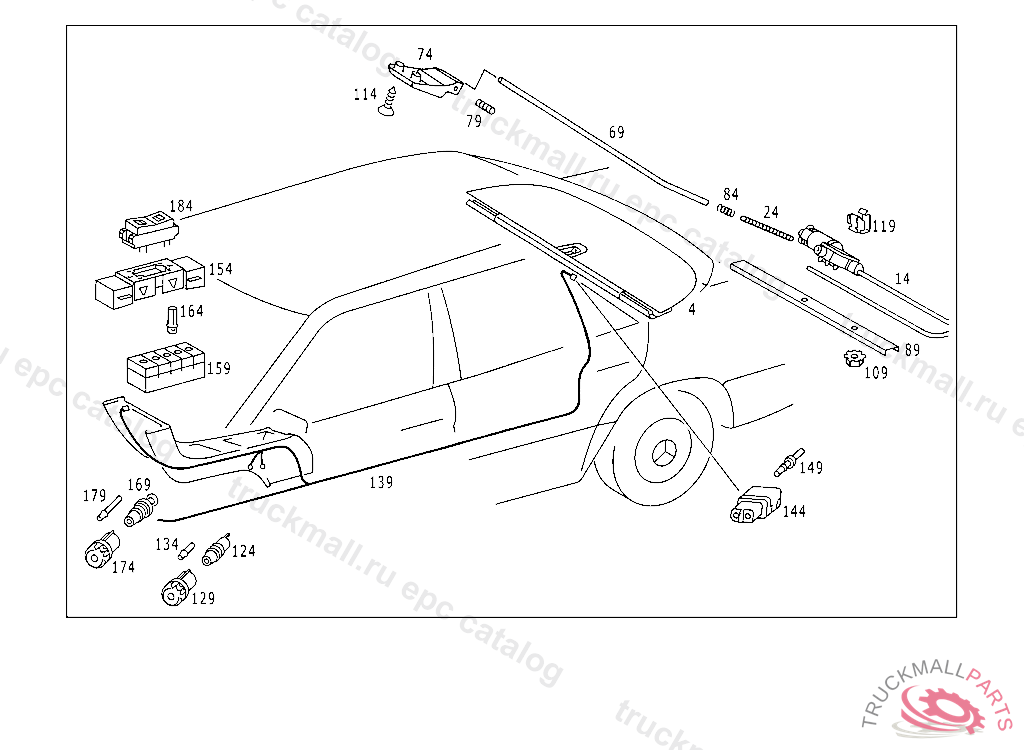 PARTS KIT ROLLER BLIND,RANGE OF DELIVERY FOR SUBSEQUENT INSTALLATION, RANGE OF DELIVERY DOES NOT INCLUDE: ROLLER BLIND, COVER RAIL, LEFT AND RIGHT COVERING, HEADREST CABLE HARNESS USED WITH ROLLER BLIND,END STOP/END SWITCH