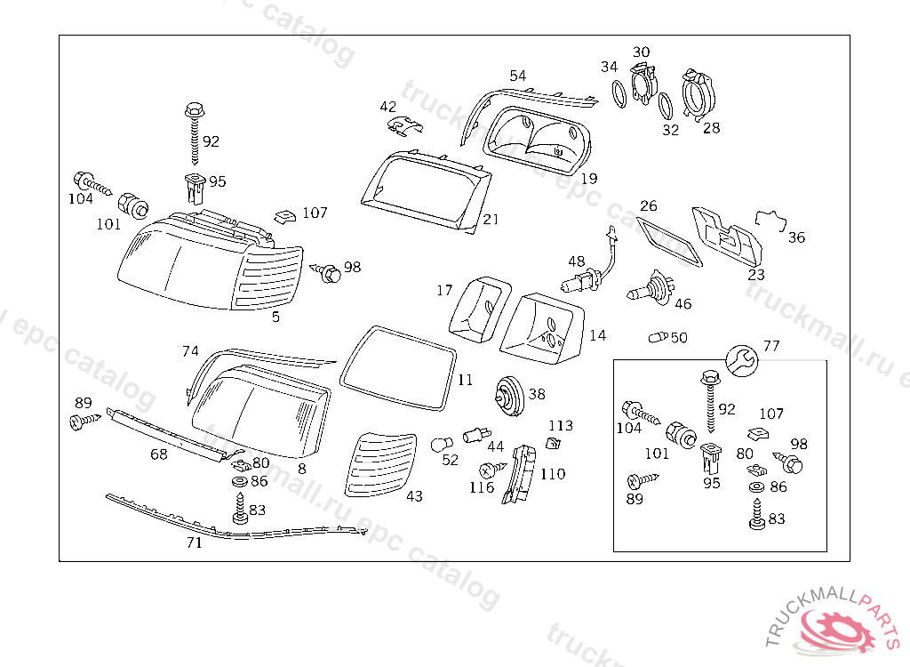 LIGHTING UNIT LEFT,R.H.TRAFFIC, WITH LIGHT RANGE REGULATOR, A 192209 ALSO INSTALLED ON A 159651 - A 192207 WITH CODE 856 AUSTRALIAFROM MODEL YEAR'95