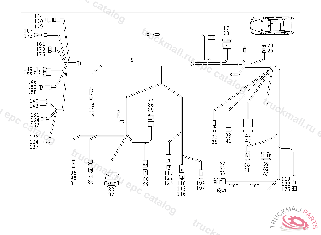 CABLE HARNESS ROOF MOUNTED CABLE HARNESS, A 289559 X 754619 EXCEPT CODE 802 ALSO INSTALLED IN VEHICLE FROM A 289560, X 754620 WITH CODE 801