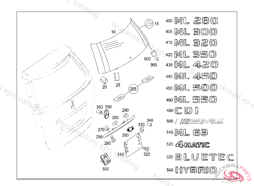 TYPE DESIGNATION TO TAILGATE ML 320, A 53600720090709800