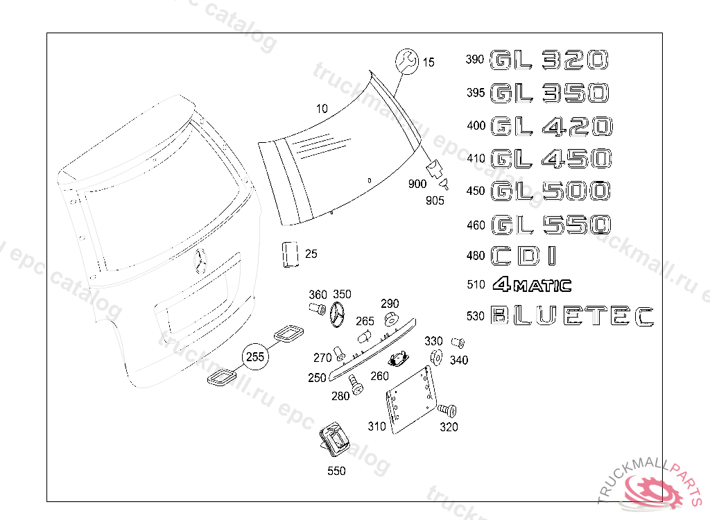 MODEL PLATE TO TAILGATE GL 320, A 53600720090709800, Replaced By: A2048170815