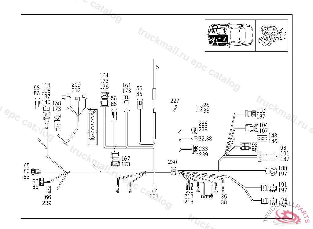 CABLE HARNESS ENGINE CABLE HARNESS,BODY MOUNTED, F 025731 EXCEPT CODE 807 ALSO INSTALLED IN VEHICLE TO F 025730 WITH CODE 808 F 080358 EXCEPT CODE 809 ALSO INSTALLED IN VEHICLE FROM F 080359 WITH CODE 808