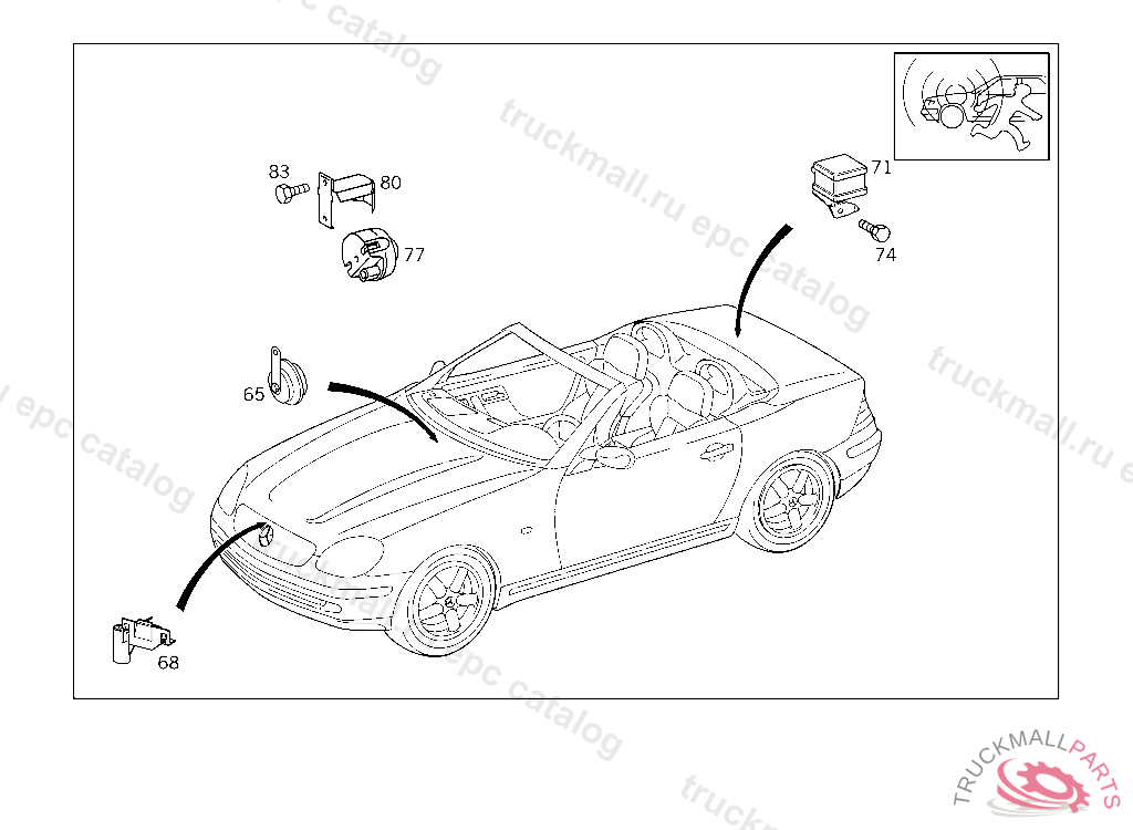 ALARM UNIT SIREN, F 136789(COUPE) T 000730(COUPE), T 054271(CABRIO) EXEPT ON VEHICULES WITH CODE 801 ALSO INSTALLED IN VEHICLE FROM T 000731(COUPE), T 054272(CABRI O), F 136790(COUPE) WITH CODE 800