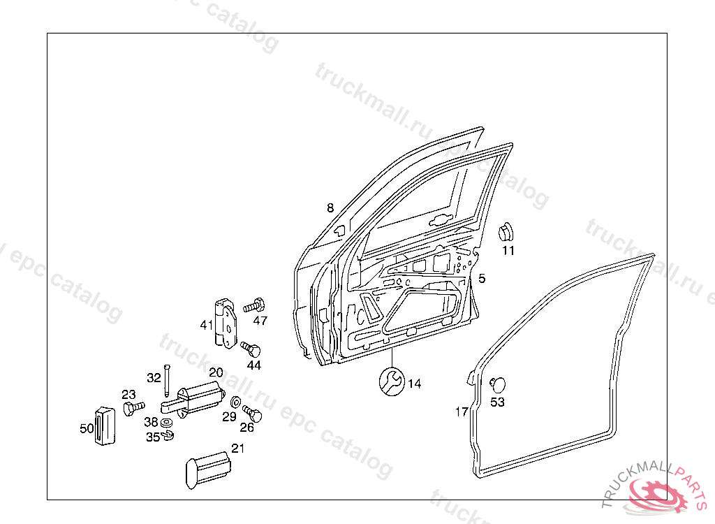 DOOR SHELL RIGHT, UP TO CHASSIS,ORDER ADDITIONALLY: 1 PROTECTIVE HOSE 126 821 08 97,1 ESCUTCHEON 124 821 00 59,OR 1 EXPANSION PLUG 124 997 00 25 A 274530 F 187590 IN CASE OF VEHICLES LESS BURGLARY ALARM SYSTEM,ORDER ADDITIONALLY: 1X 126 987 04 44