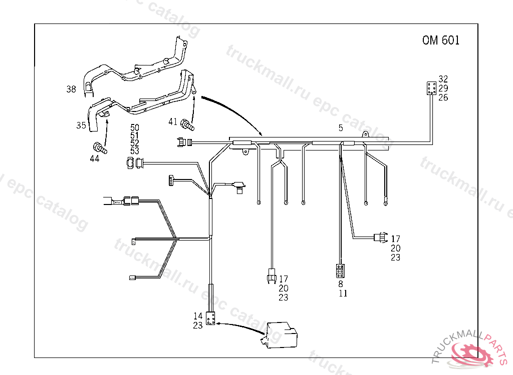 CABLE HARNESS ENGINE CABLE HARNESS, A 218852 EXCEPT FOR A 103237 - A 218851 WITH CODE 030 F 190065 EXCEPT FOR F 159752 - F 190064 WITH CODE 030 AS OF IDENT-NO.: FOR HEADLAMP WIRING HARNESS REFER TO TU 54/121, WITH AIR CONDITIONER REFER TO TU 54/485 ALSO INSTALLED ON A 219847