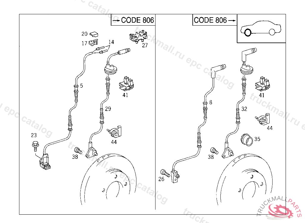 CABLE HARNESS BRAKE LINING WEAR INDICATOR,RIGHT, A 344660 F 331440 EXCEPT CODE 806 ALSO INSTALLED IN VEHICLE FROM A 344661, F 331441 WITH CODE 805
