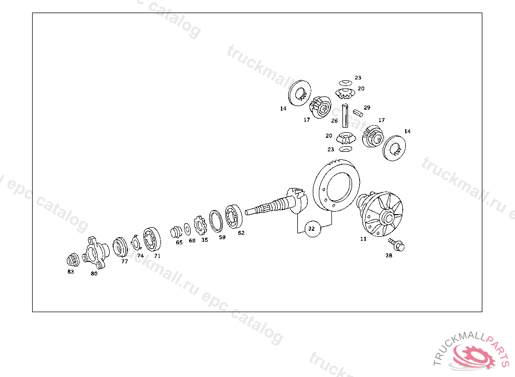DIFFERENTIAL GEAR LESS RING GEAR AND PINION, REAR AXLE HOUSING WITH DIFFERENTIAL,LESS SIDE BEARING CABS 003 103239 007 087551 086 007106 093 008992 102,103 240183 105 231729 183 015395 190 021957 193 002093 200 027295 280 000777 283 003632