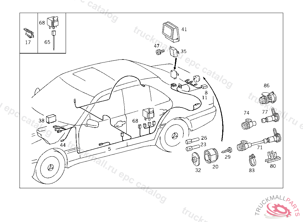 CABLE HARNESS TRAILER COUPLING, A 519674 F 619721 EXCEPT CODE 807 ALSO INSTALLED IN VEHICLE TO A 519673, F 619720 WITH CODE 808