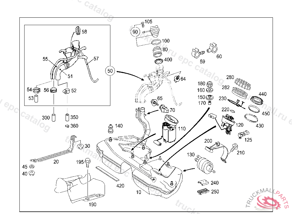 FUEL TANK , ALSO ORDER UP TO IDENT NO: A199237 , F150421 , R033013 1 X A 203 470 19 64 AND 1 X A 203 470 20 64