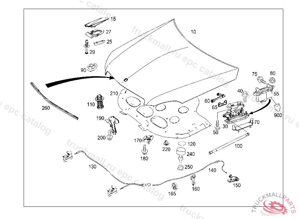 ENGINE HOOD RELEASE CABLE REAR, A 48090620110131 F 40323720090831
