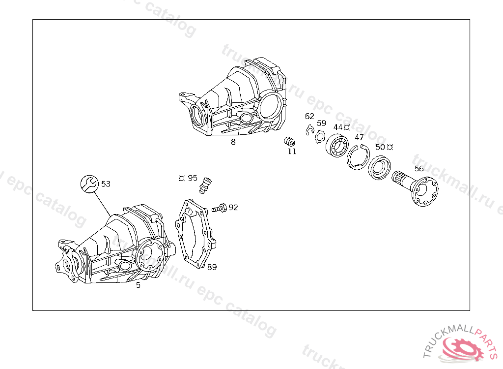 LOCK AS REQUIRED 4.4 MM, REAR AXLE HOUSING WITH DIFFERENTIAL,LESS SIDE BEARING CABS 003 103239 007 087551 086 007106 093 008992 102,103 240183 105 231729 183 015395 190 021957 193 002093 200 027295 280 000777 283 003632
