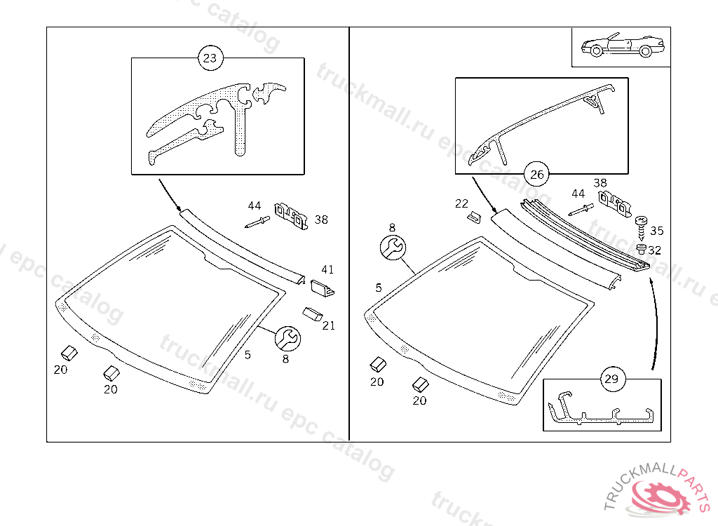 WINDSHIELD GREEN HEAT-ABSORBING GLASS, WITH SUN FILTER, IF NOT REQUIRED COAT INSPECTION GLASS WITH GLASS PRIMER F 129679 T 000001(COUPE), T 028296(CABRIO) EXCEPT CODE 809 ALSO INSTALLED IN VEHICLE TO F 129678, T 028295 WITH CODE 800