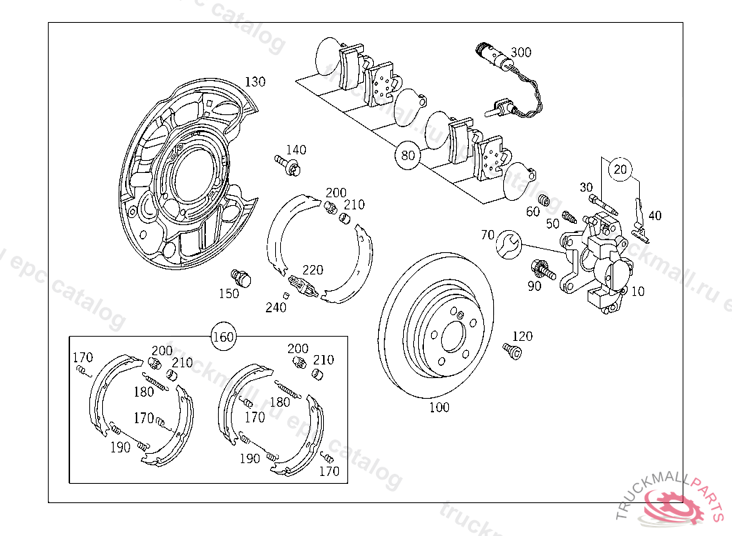 TS BRAKE PAD PARTS KIT, WITHOUT WEAR SENSOR, WHEN SELLING BRAKE LININGS TO END USERS/DESK BUYERS THE A 203 005 25 99 IS TO BE HANDED OVER FREE OF CHARGE