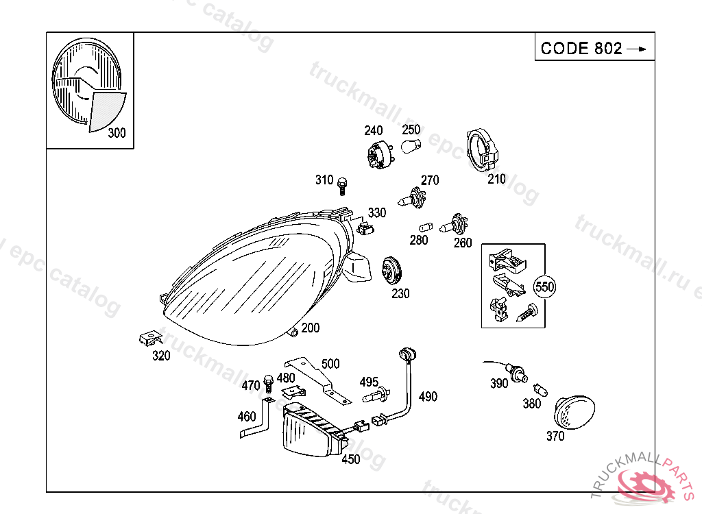 LIGHTING UNIT RIGHT, LEFT-SIDE TRAFFIC, WITH CLEAR LENS, J 48100520010301801