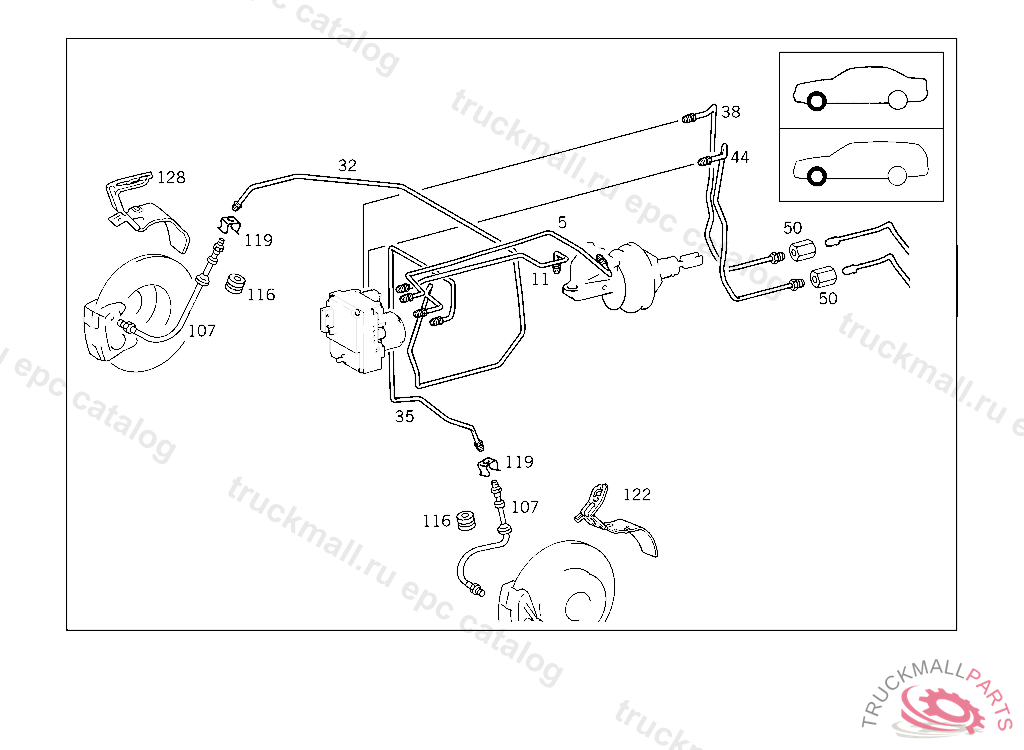 LINE FROM HYDRAULIC UNIT TO RIGHT FRONT WHEEL, UP TO IDENT NO. A 212244 EXCEPT FOR A 187334 - A 212243 WITH CODE 867 TO BE ADAPTED DURING ASSEMBLY