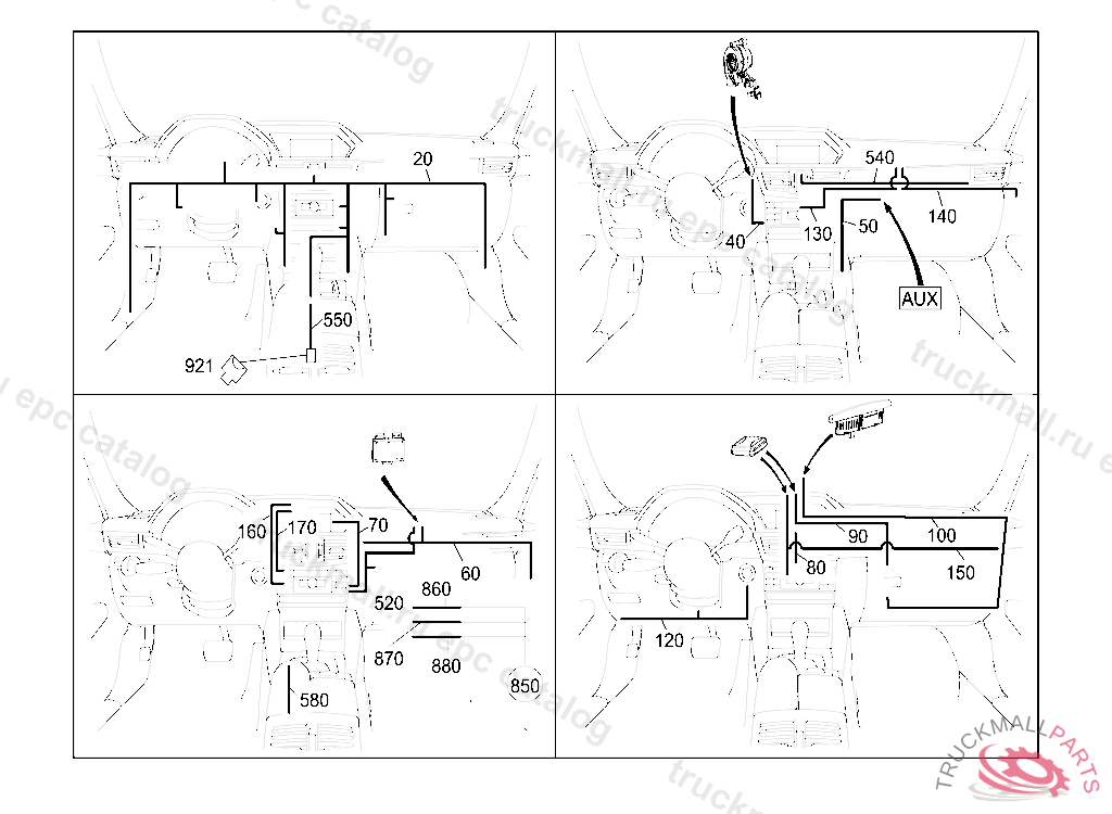ELECTRICAL WIRING HARNESS OPERATING UNIT TO CENTRAL DISPLAY, A 18158120100129 L 00550820100131 V 00053420100131
