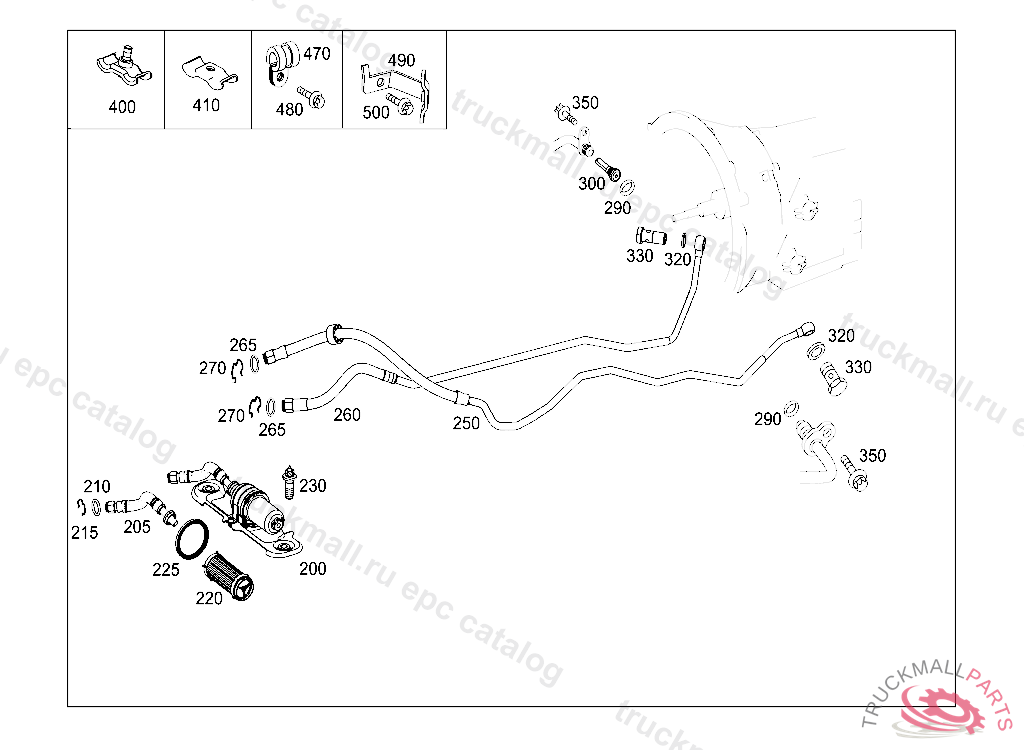 OIL LINE FROM TRANSMISSION TO OIL COOLER,RIGHT, F 52558320100528, Replaced By: A6511802430, +001A6511802530