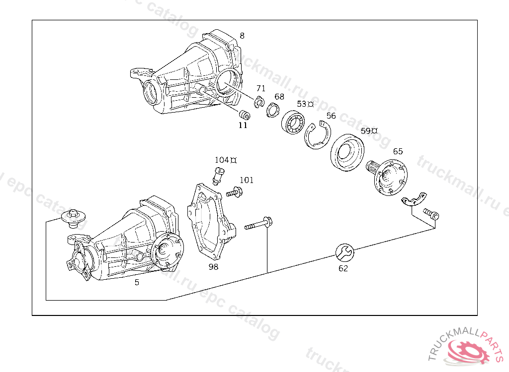 LOCK AS REQUIRED 4.4 MM, REAR AXLE HOUSING WITH DIFFERENTIAL,LESS SIDE BEARING CABS 003 103239 007 087551 086 007106 093 008992 102,103 240183 105 231729 183 015395 190 021957 193 002093 200 027295 280 000777 283 003632