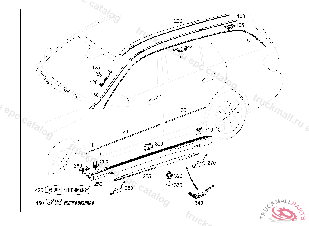 CLIP WATER REPELLENT AT LEFT A-PILLAR, FIRST EXHAUST STOCK OF OLD PARTS UP TO IDENT NO. V 00003220130619, Replaced By: A0039919470
