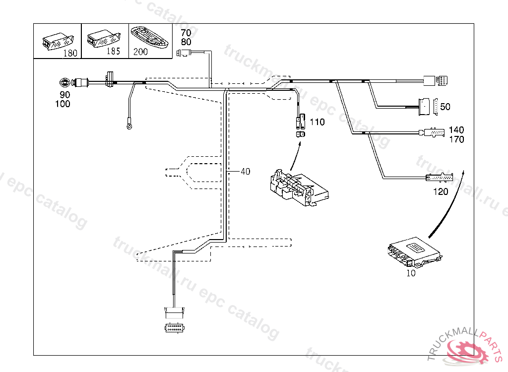 WIRING HARNESS PARKTRONIC SYSTEM, A 19148120010630801 ORDER OBJECT NUMBER WITHOUT ES1 UP TO IDENT. NO. A368543 ORDER OBJECT NUMBER WITH ES1 98 AS OF IDENT. NO. A368544