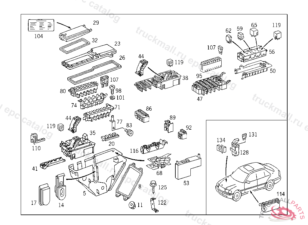 FUSE BOX CENTRAL ELECTRICAL SYSTEM SAM, A 519674 F 619721 EXCEPT CODE 807 ALSO INSTALLED IN VEHICLE TO A 519673, F 619720 WITH CODE 808