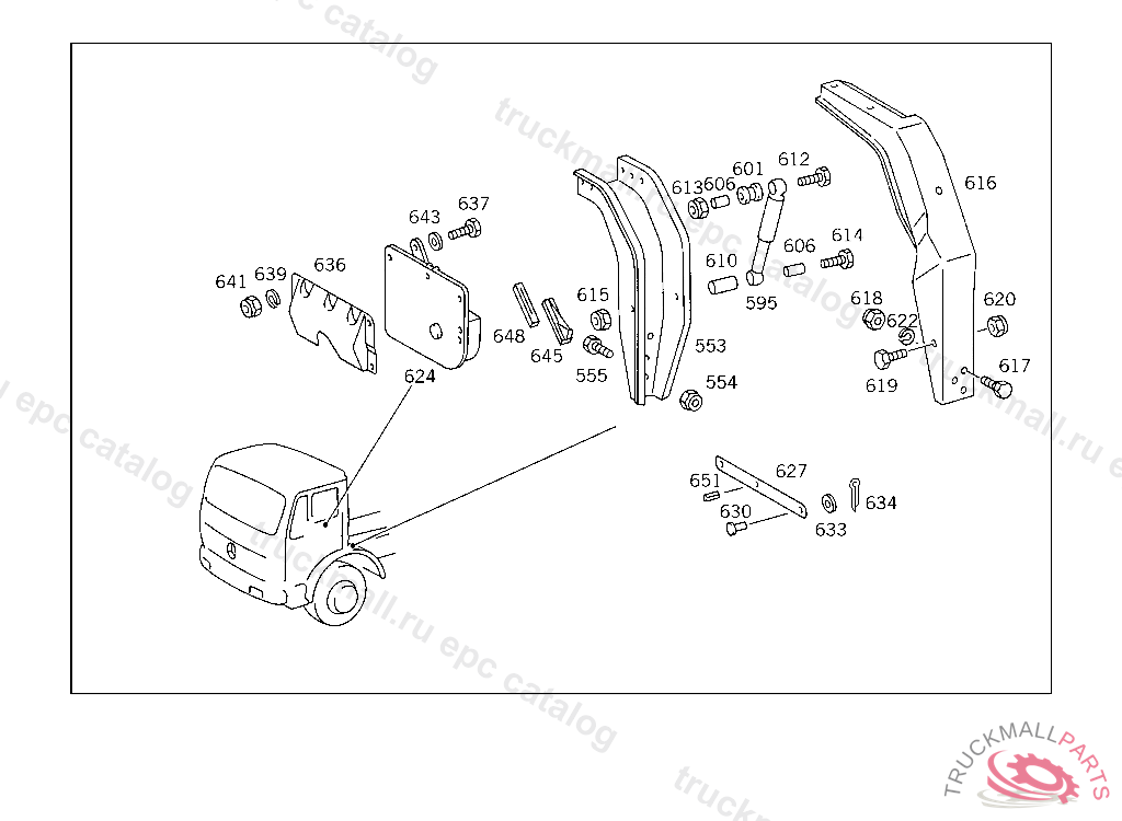 PIN PULL TO FASTENER, 385.019 FOR USE WITH MEDIUM-LENGTH MERCEDES-BENZ CAB,385.068,069 ONLY VEHICLES HAVING NO MECEDES-BENZ CAB