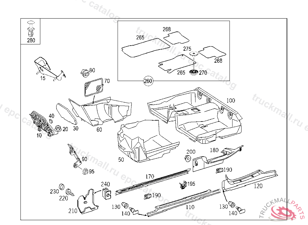 TS FRONT FLOOR COVERING PARTS KIT, IN RUBBER VERSION