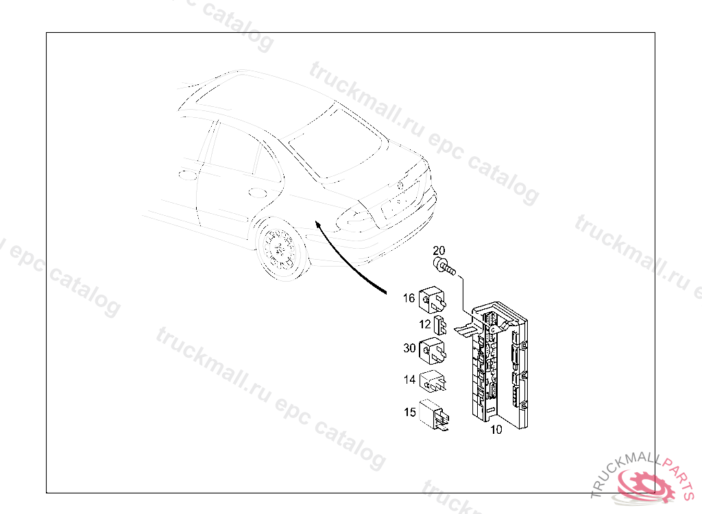 ELECTRICAL BASIC MODULE SIGNAL ACQUISITION AND ACTUATION MODULE WITH REAR FUSE AND RELAY MODULE SAM/SRB, E 00000120000101805 A 74574920041029805, Replaced By: A2035453401