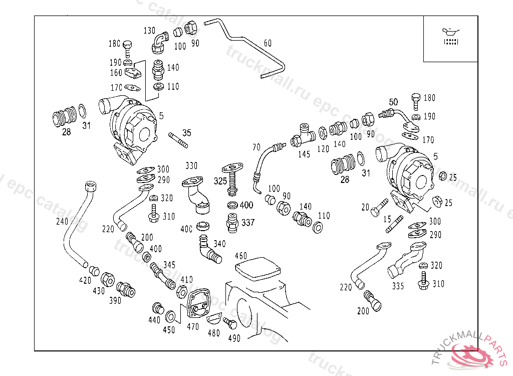 OIL LINE EXHAUST GAS TURBOCHARGER OIL RETURN, RIGHT