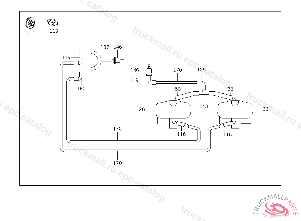 HOSE MASTER SWITCH AND VACUUM SWITCH 40 MM, 023 164780 033 066774 123 158077 130 172061