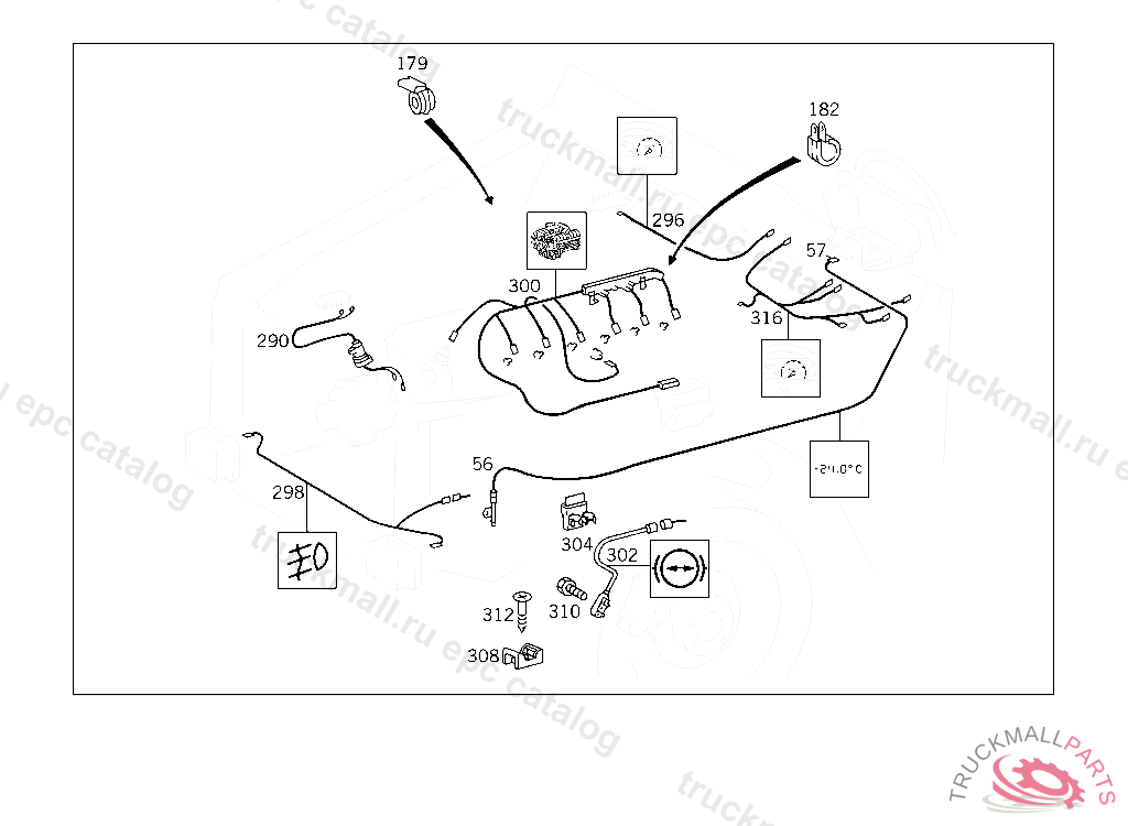 CABLE HARNESS , FIRST EXHAUST STOCK OF OLD PARTS UP TO IDENT NO. 074352 906476, Replaced By: A4635401509