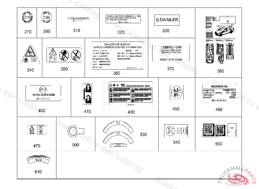 CERTIFICATION PLATE CERTIFICATION PLATE, F 53986820100630 WHEN ORDERING, THE AMG COUNT NUMBER MUST BE SPECIFIED FOR "SPECIFICATIONS FOR STAMPING THE TYPE PLATE" UNDER VIN, SEE VEDOC/CERTIFICATION